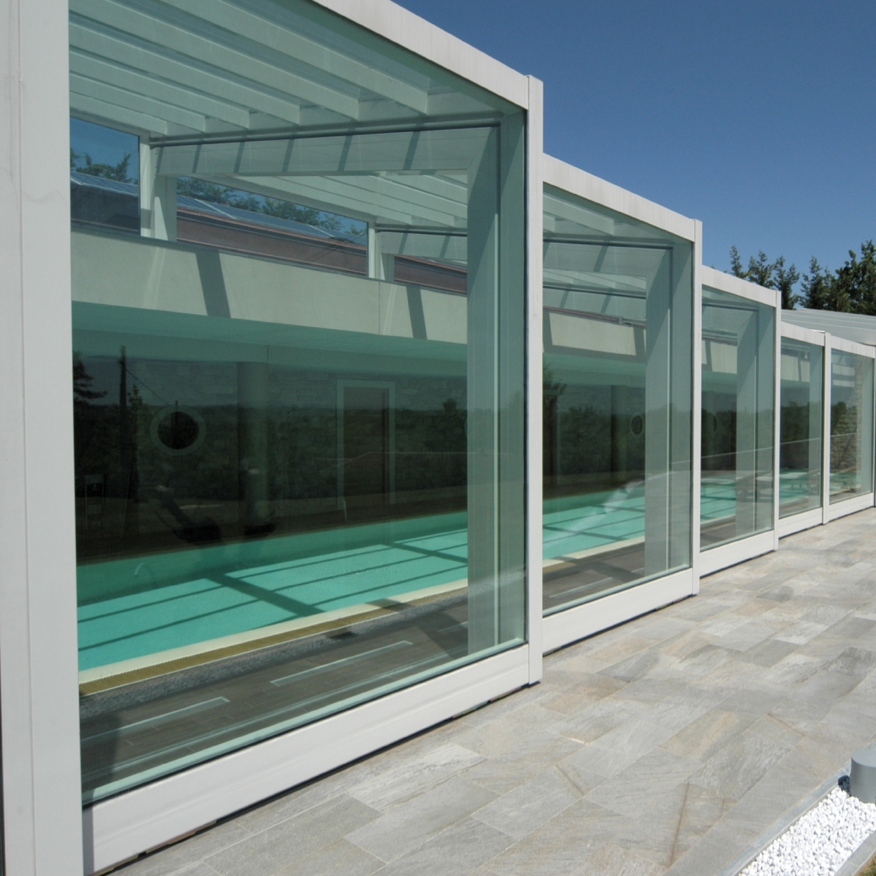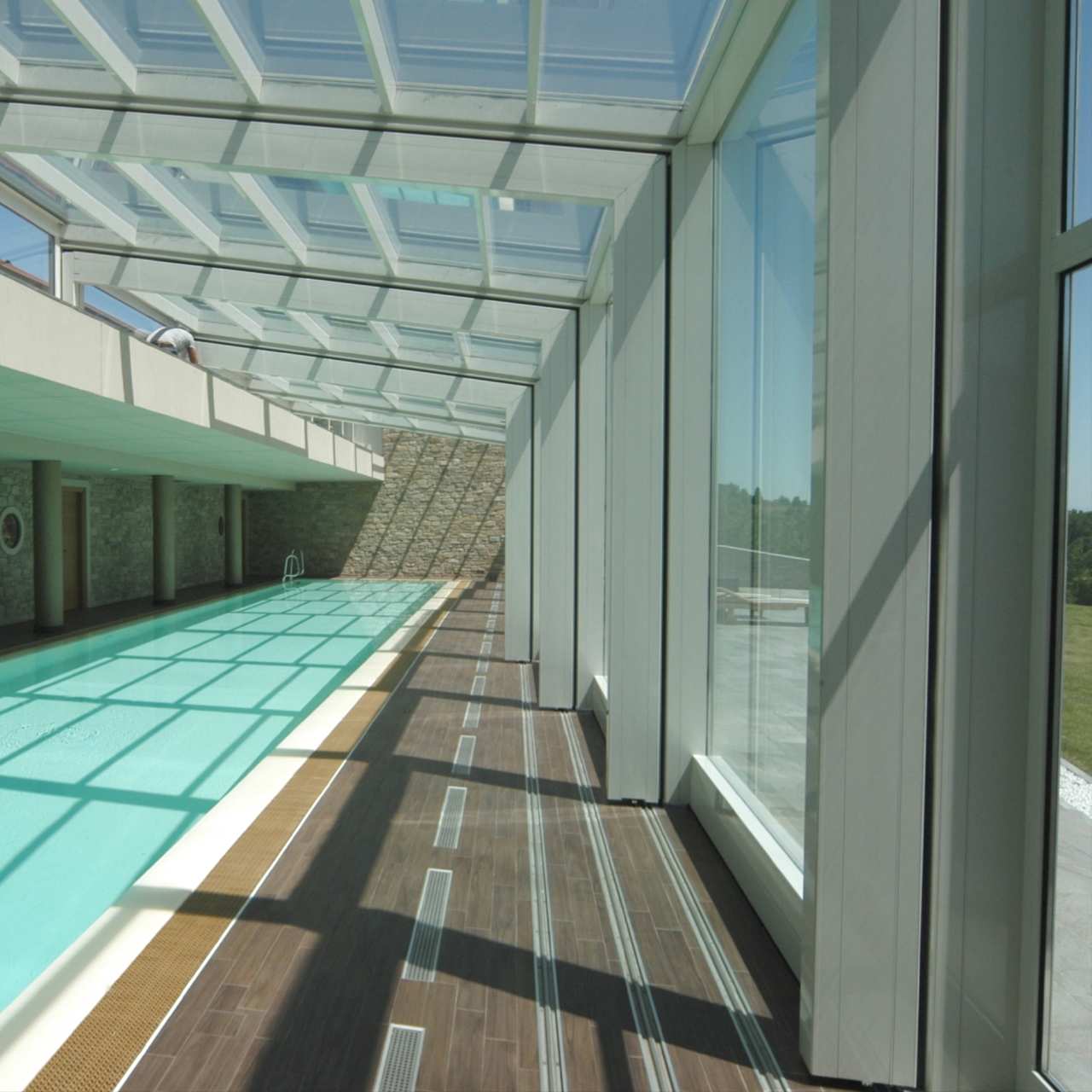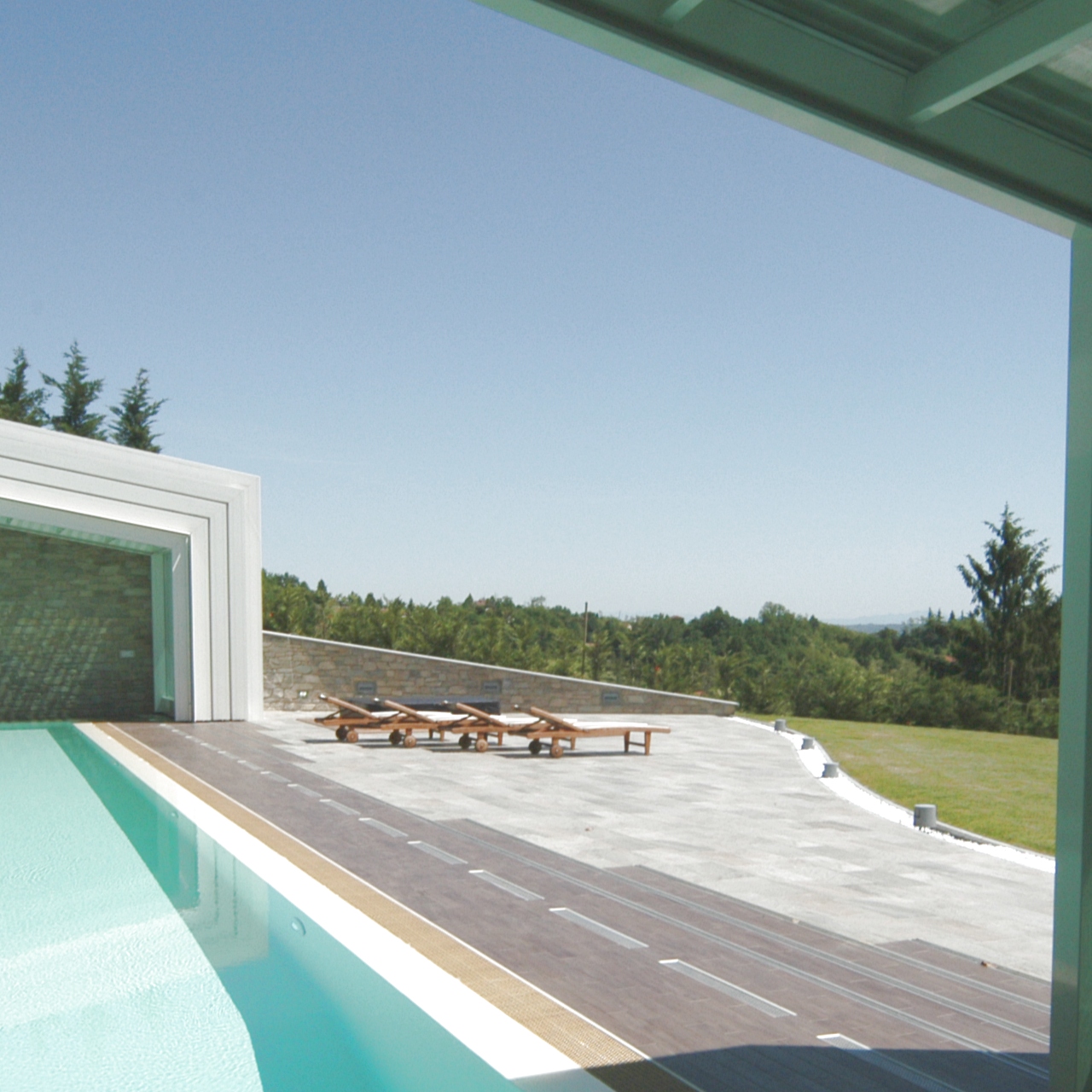il lusso di un centro benessere privato elegante e moderno, dotato di piscina con copertura apribile con strutture in alluminio coibentato per massimizzare il risparmio energetico.