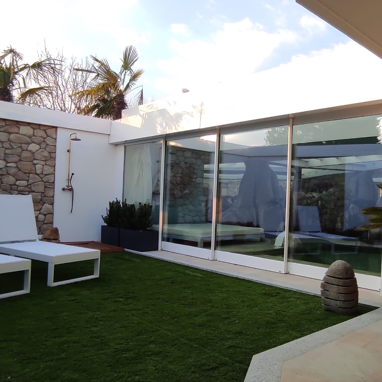 totale apertura del lato anteriore grazie all'inserimento di serramenti scorrevoli motorizzati