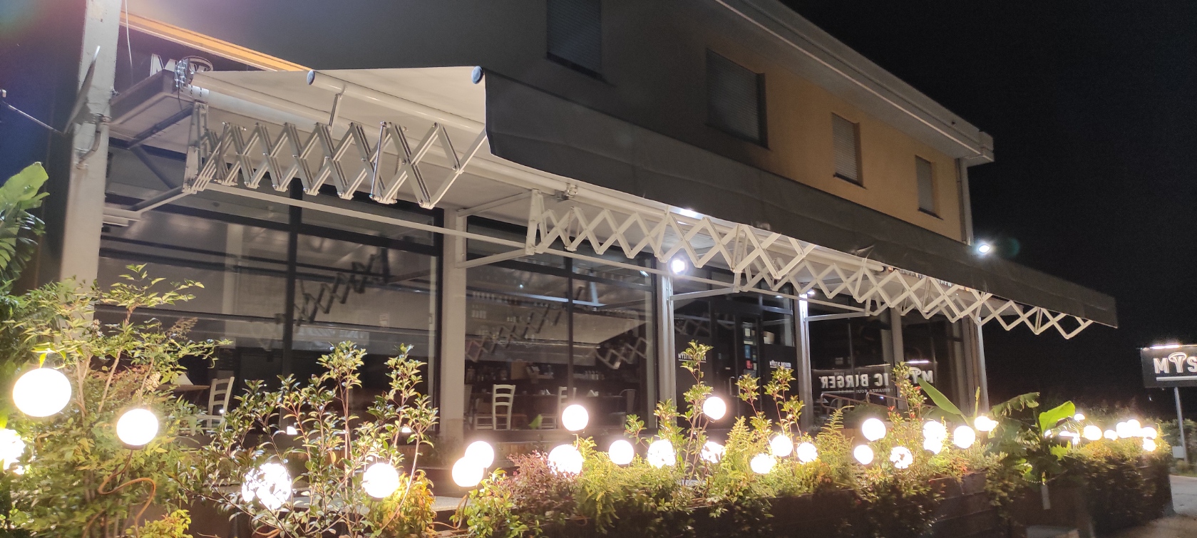 le tende a pantografo esistono da sempre; ci sono realizzazioni pregevoli ancora funzionanti in molte ville classiche italiane; eleganti ed adatte a palazzi storici, permettono la realizzazione di coperture tessili di grandi dimensioni, fino a sette metri di luce.