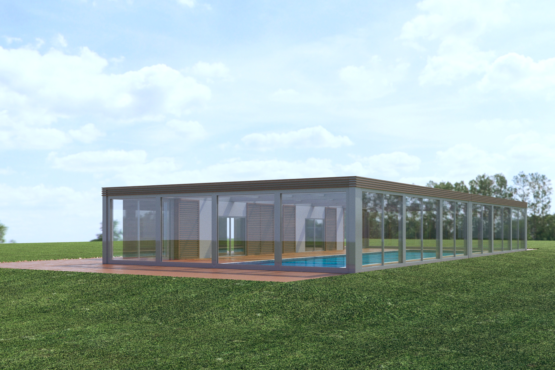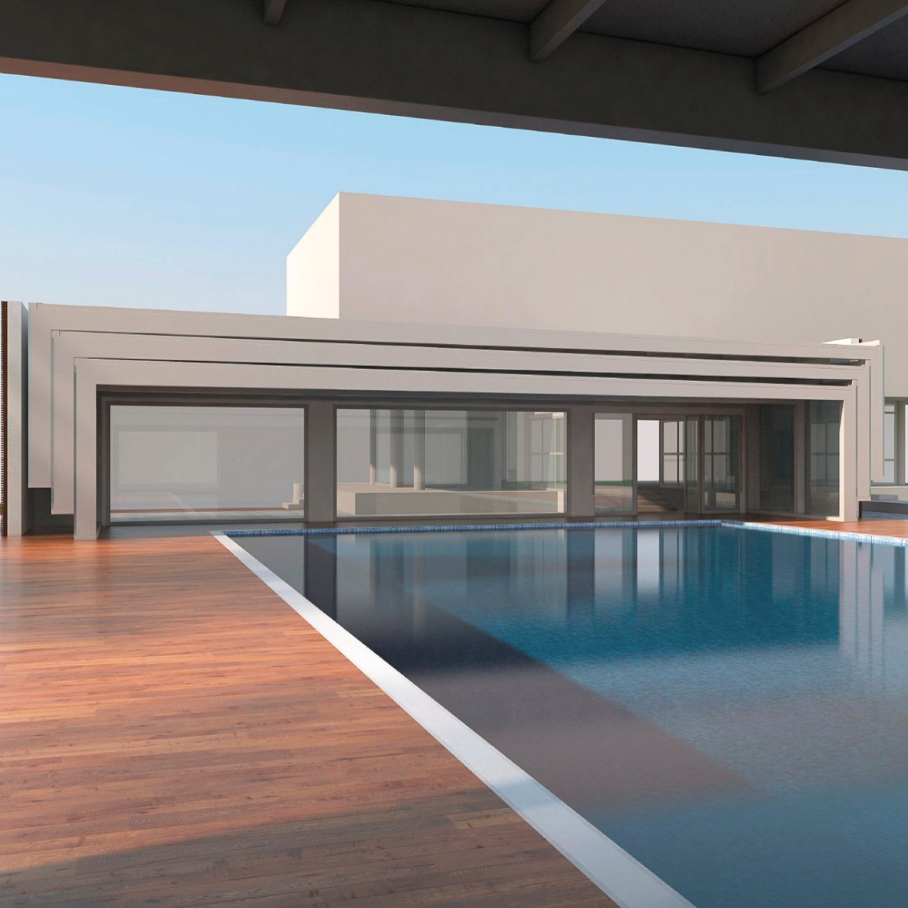 progetto studiato ed ingegnerizzato per conto di un cliente che non si è potuto concretizzare, come spesso accade, per questioni burocratiche autorizzative; questa tipologia di copertura risolve ed elimina l'aspetto antiestetico delle coperture mobili telescopiche tradizionali che, per naturale configurazione, assumono prospetti a scaletta.