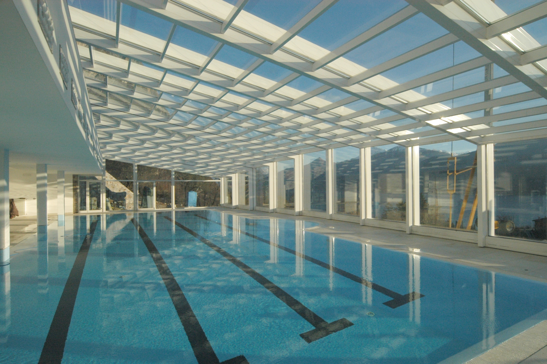 rivestimenti in doppio vetrocamera sia lateralmente che sul tetto creano un ambiente luminoso ed aperto sia in estate che d'inverno.