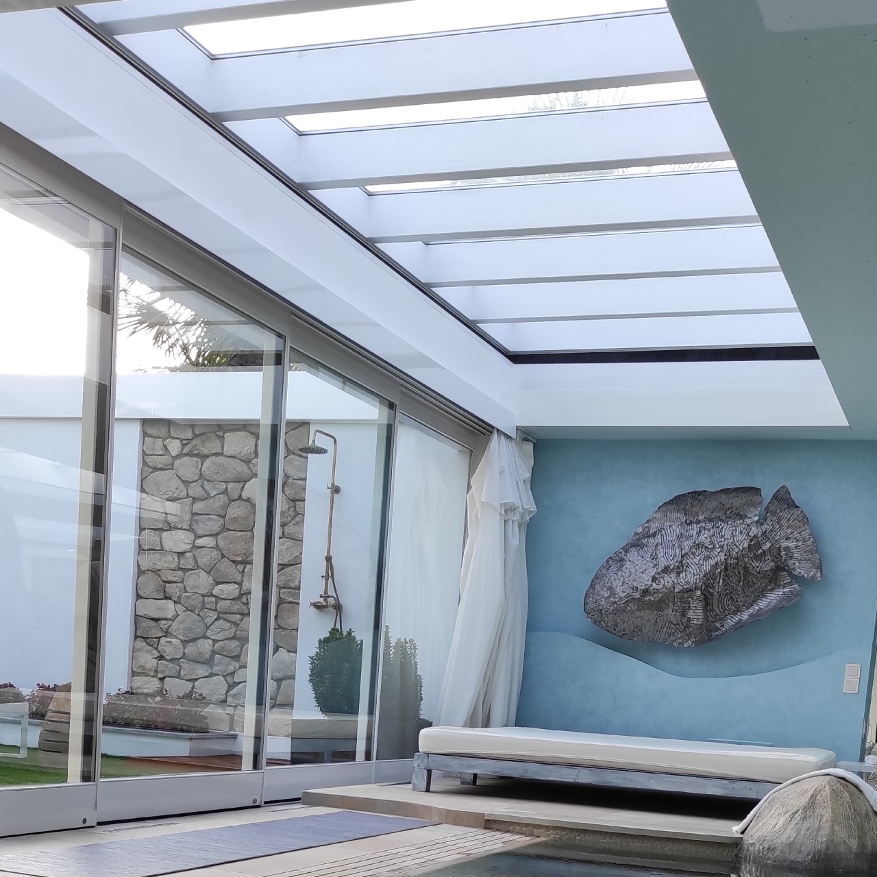 totale apertura del lato anteriore grazie all'inserimento di serramenti scorrevoli motorizzati